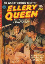 | Above: Ziff Davis' Ellery Queen included "Vengeance From the Grave" - "The Corpse That Killed" - "The Legion of the Damned" - "The Chain Letter Murders" and Slippery Slim in "The Hopeless Diamond". "The Corpse That Killed" re-appeared digitally restored in a Source Point Press publication with a collection Ellery Queen comics. "J. Werner Presents Classic Pulp" series (release Apr 29. 2020) was named Classic Pulp: Ellery Queen: Oneshot. | |